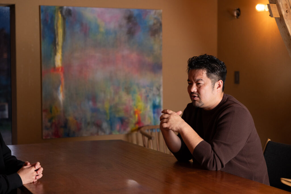 塚原 菱田さんとの出会いは強烈でした。僕たちには共通の知人がいて、その方のご紹介で、ここ長野県の坂城町にある菱田さんのご自宅でお会いしたんですよね。僕は出家しているのでオレンジ色の袈裟を着てきたと思うんですけれども、菱田さんの最初の印象はむっちゃ怖かった。菱田さんはど直球に信念的なものを聞いてこられる方なので、「塚原さんは何を大切にしごとされていますか? 塚原さんの信念ってどこにあるんですか?」というのをアイスブレークほぼなしで。(笑)開口一番、「どういう信念でしごとをしているのか?」と聞かれて面食らいました。